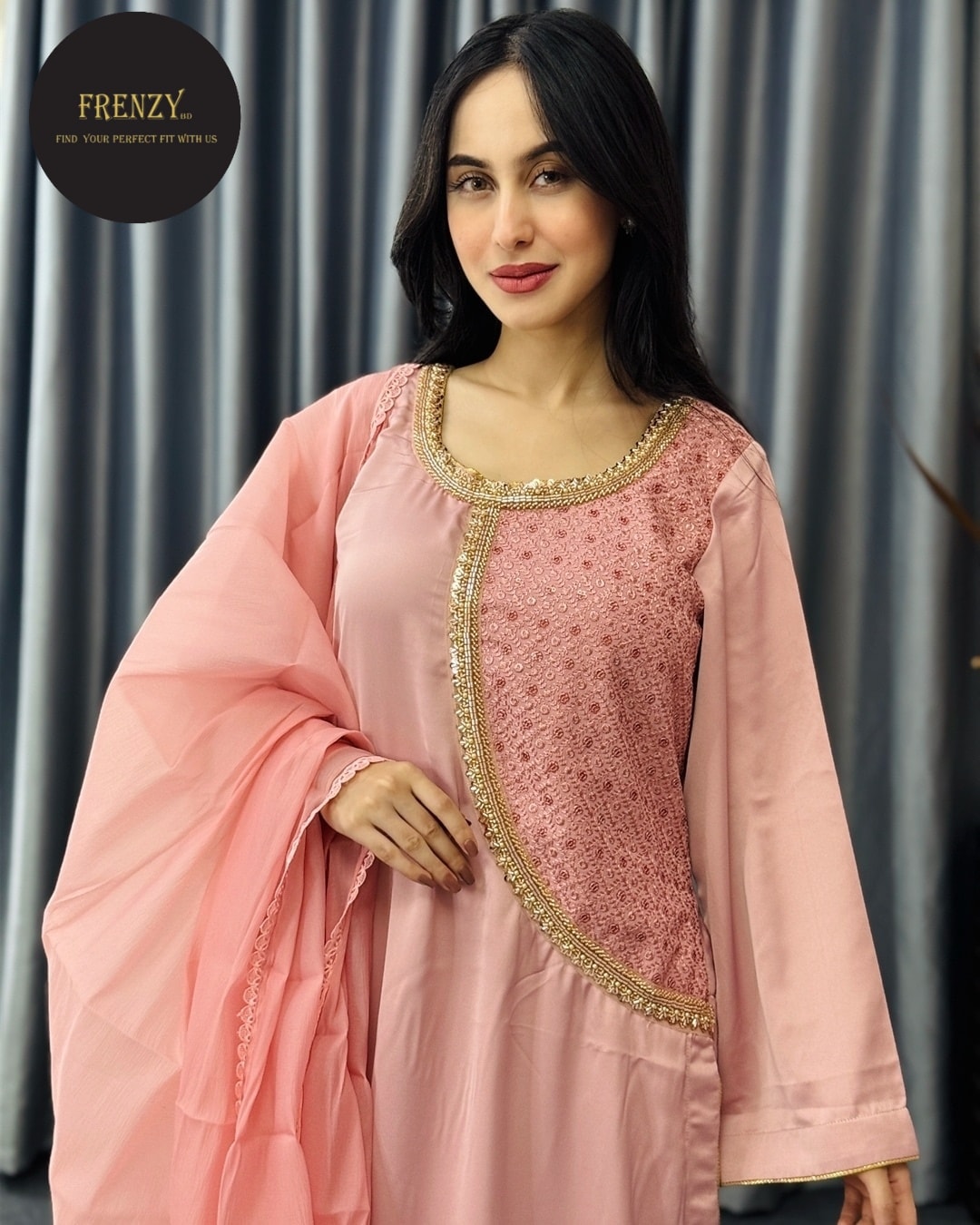 Royal Elegance Premium Shatung Dress with Soft Chiffon Dupatta